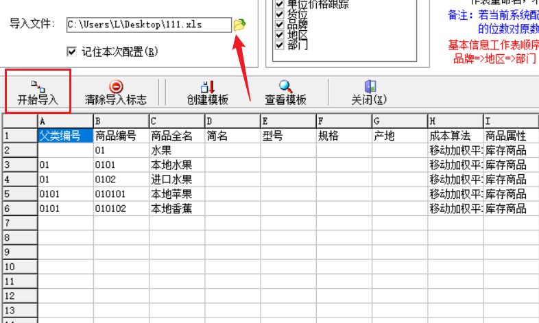 基本信息导入基本信息的导入包括:仓库信息、商品信息、单位信息和库存信息导入分为以下步骤: